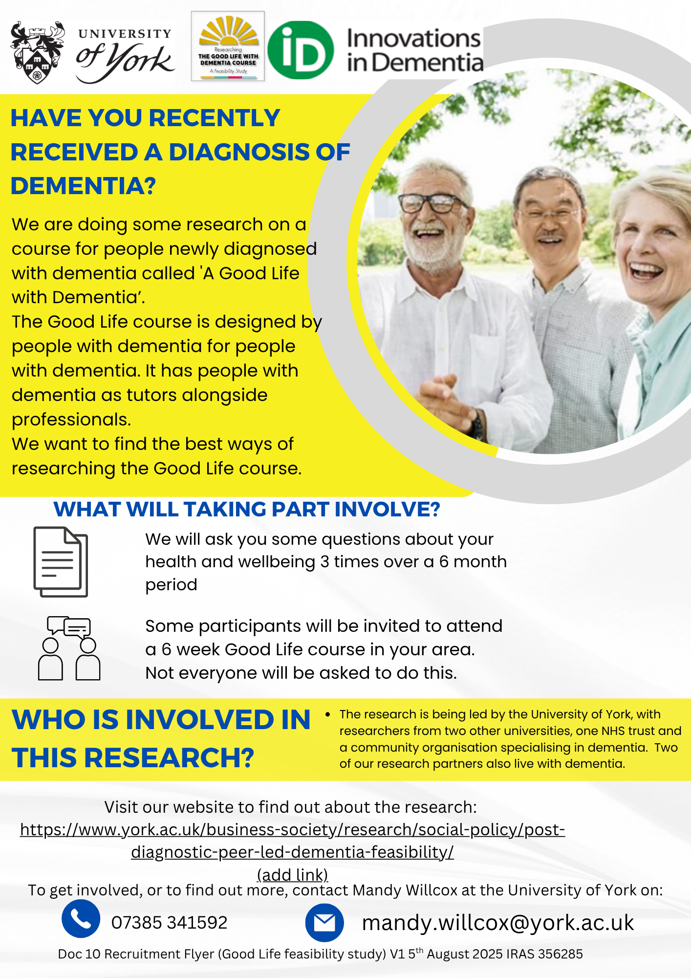 "I learnt that the more in depth knowledge of the illness discovered, the greater the chance of helping others and I hope that some treatment/cure can be found for dementia patients in the future”. (Service user engaged in research)